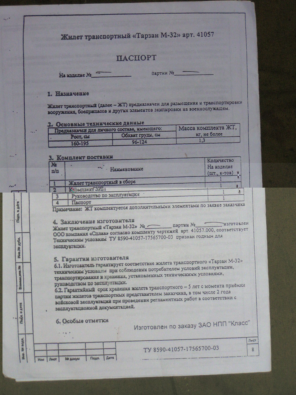 Теперь кратко о жилете: Разработан для экипировки пехоты и горных частей МО, МВД, ФПС, групп антитеррора. Фронтальная силовая «молния». Регулировка по размерам от 46 до 68, по росту от 164 до 200 см. Совместим с альпинистской подвесной системой. В карманах отверстия для слива воды. Беспрепятственное ношение рюкзаков, ранцев. Перемычка для эвакуации раненого бойца. Вес: 1000 гр.