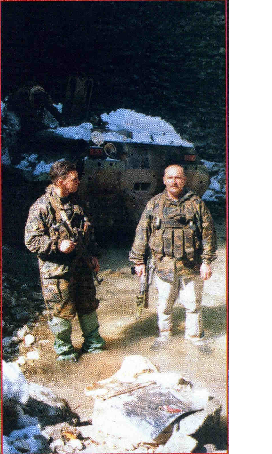 Спасибо за фото. Да, это именно та самая операция, когда трофейный БТР вытаскивали из гор. Поэтому там мелькает танк, что-бы если что подтолкнуть и лозунги исламистские еще не стерты. На фото кстати, полковник Романов, про него была статья в Братишке.