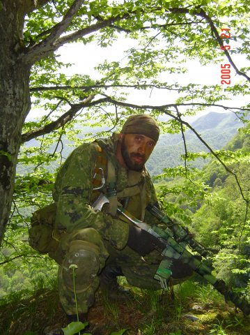 A sniper of the Russian federal forces guards surroundings in the Shatoy area in the South of Chechnya, 05 December 2000.
