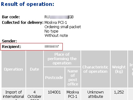 По второй ссылке (где английский язык) видна фамилия получателя при отслеживании посылки.
