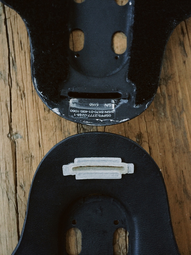 Полуфинальным этапом в завершении проекта являлось закрепление П-образных захватов к корпусу маунта при помощи заклёпок. Данный метод также применялся при производстве оригинального PVS-21 NVG Mount.