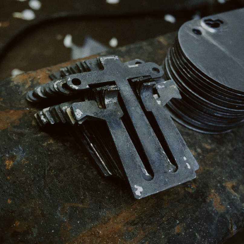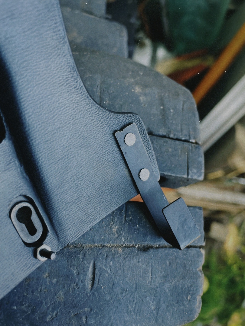 После изготовления передних панелей и закалки пружин я подошел к самой интересной части своего проекта — запирающему механизму. В оригинальном маунте этим механизмом является спарка двух подпружиненных скользящих деталей.