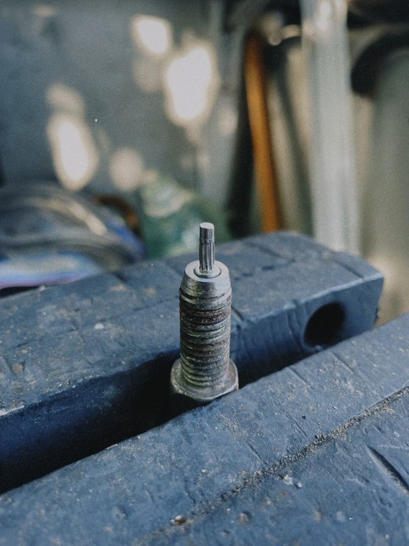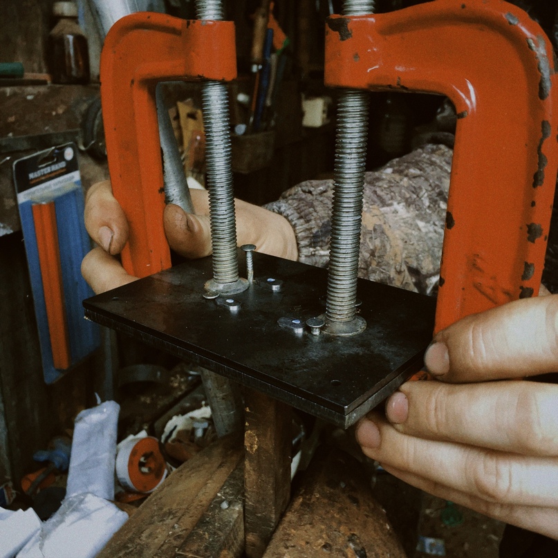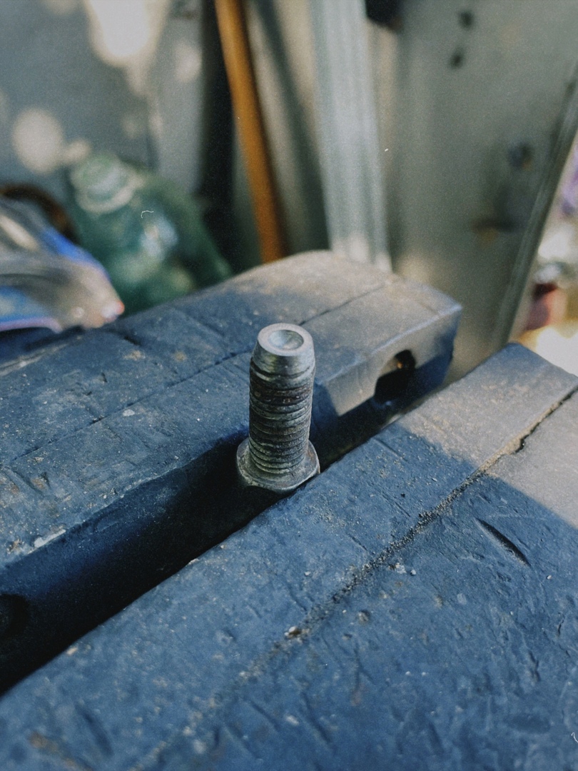 Для того, чтобы в процессе клепания, шляпки заклёпок не деформировались, из болта М8 была изготовлена матрица.