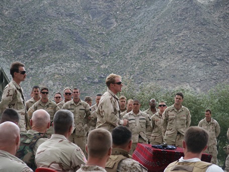 Рэнди Дерр выступает перед Афганскими силами безопасности (ASF) в лагере Блессинг, март 2004 года.