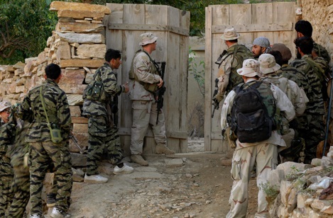ODA и афганские солдаты практикуют «конфетную дипломатию» в кишлаке Шамиркот, октябрь 2003 года.