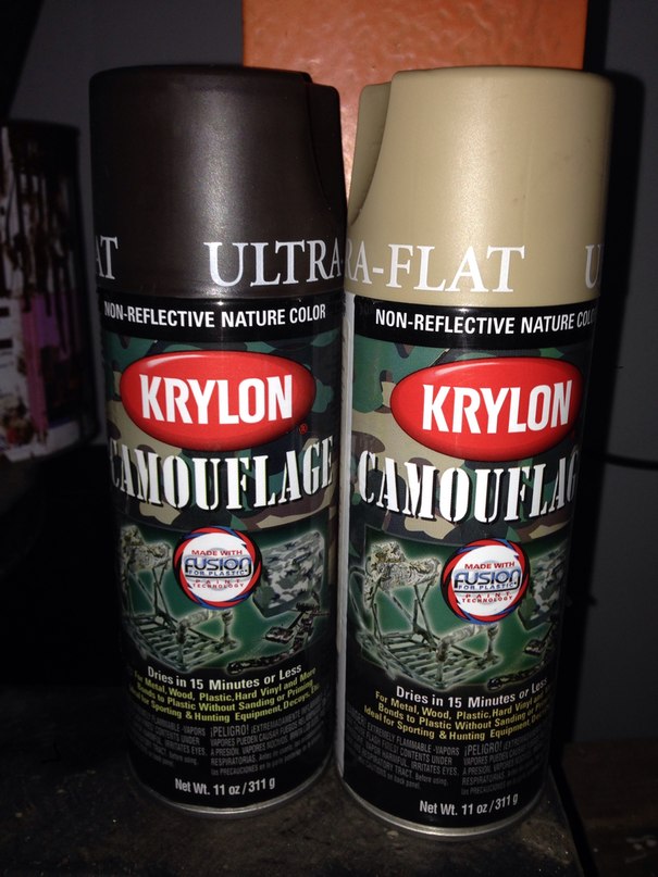 мы красили максимально просто: самая дешевая краска асмц, олива, хакки. заклеивали малярным скотчем "дыры", и задували как попало. :twisted: