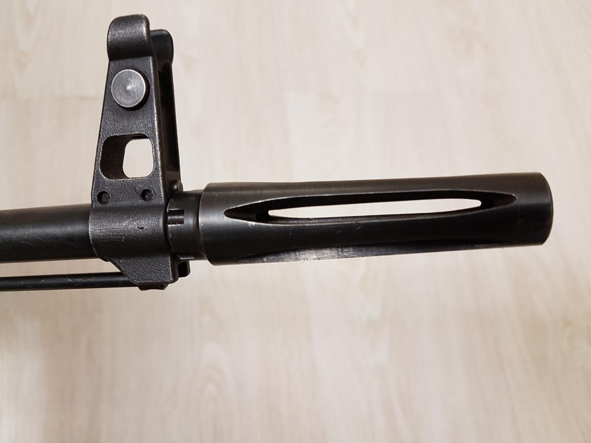 2. Во-вторых, хорошо бы заполировать основание мушки, газовую камеру и колодку прицела и заворонить их. На таком автомате, как у вас, эти детали изготавливались фрезеровкой из поковки, а не литьем (основной признак -- иная конфигурация газовой камеры). Ну и, соответственно, неплохо бы поменять год изготовления на что-то более раннее. По моим наблюдениям переход на литье произошел где-то с 70-71 года.